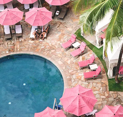 Relax under the coveted pink parasol. We recommend renting a cabana to fully immerse yourself in the Hawaiian atmosphere.